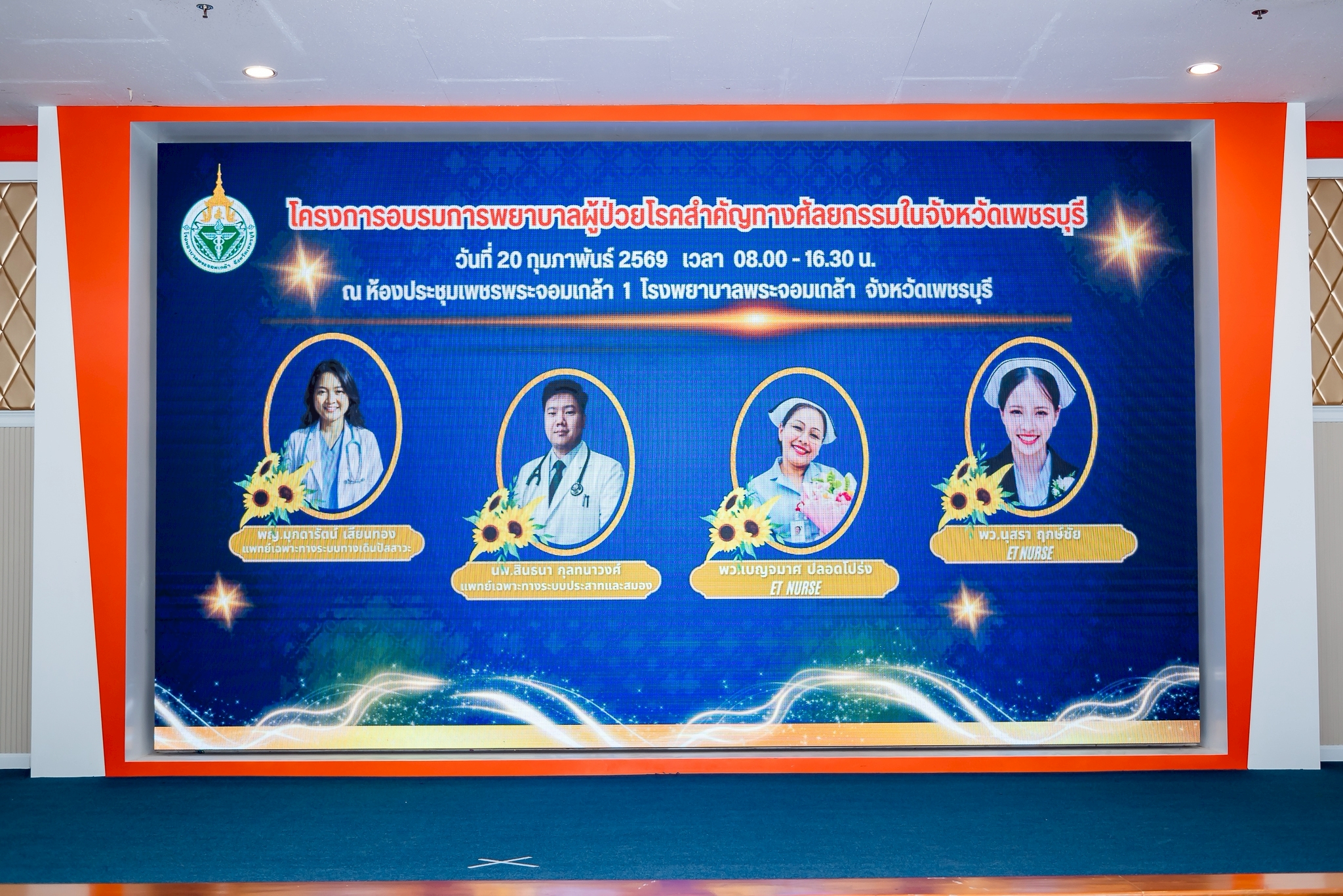 กลุ่มภารกิจด้านการพยาบาล โรงพยาบาลพระจอมเกล้า จังหวัดเพชรบุรี จัดโครงการ "อบรมการพัฒนาศักยภาพบุคลากรทางการพยาบาลศัลยกรรม" โดยมี นางนกุมล ศรีสม หัวหน้าพยาบาล กล่าวรายงาน และนายแพทย์พิเชษฐ พัวพันกิจเจริญ ผู้อำนวยการ โรงพยาบาลพระจอมเกล้า จังหวัดเพชรบุรี เป็นประธานในพิธีเปิดการอบรม ในวันศุกร์ที่ 20 กุมภาพันธ์ 2569 ที่ผ่านมาโดยในการจัดอบรมครั้งนี้มีวัตถุประสงค์เพื่อพัฒนาความรู้การพยาบาลผู้ป่วยที่มีปัญหาระบบประสาทและสมอง ระบบทางเดินปัสสาวะ และ Ostomy care โดยได้รับเกียรติจาก นพ.สินธนา กุลทนาวงศ์ แพทย์เฉพาะทางระบบประสาทและสมอง พญ.มุกดารัตน์ เสียนทอง แพทย์เฉพาะทางระบบทางเดินปัสสาวะ และทีม ET nurse กลุ่มเป้าหมายที่เข้าร่วมอบรม ประกอบด้วย หัวหน้ากลุ่มงานหัวหน้าหอผู้ป่วย หัวหน้างาน พยาบาลวิชาชีพ และผู้สนใจจากหน่วยงานต่างๆภายในโรงพยาบาล